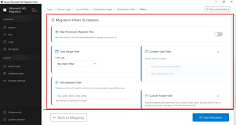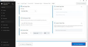The software also provides multiple advanced filtering options that allow administrators to move only the required data. Users can apply filters based on date range, file size, file extension, and content type to control exactly what data should be transferred. These filters help optimize performance and ensure that only relevant data is included in the process.